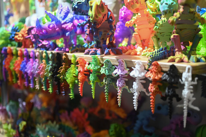 正在国际商贸城一区的今奇玩具商铺,龙、蛇、乌龟、鳐鱼等数千种3D打印玩具令人目不暇接。商铺担任人曾豪说,取保守玩具比拟,3D打印玩具色彩鲜艳、质感细腻、正在关节处的矫捷度更高,表示力和可玩性更强,具有更高的附加值和合作力。